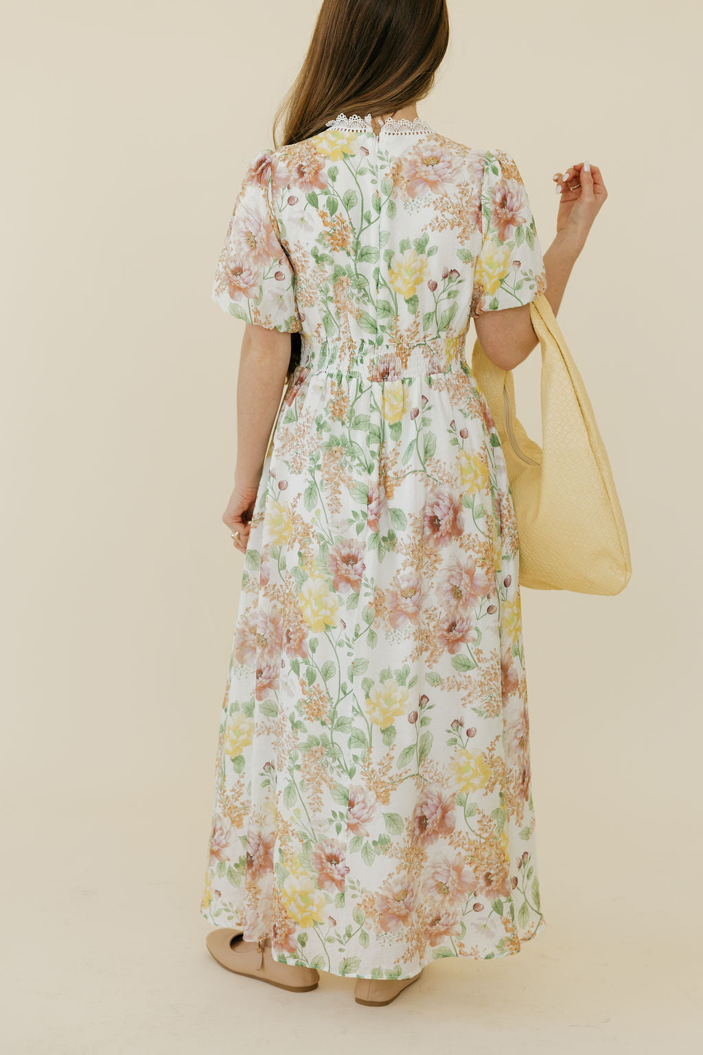 The Cordelia Dress is your go-to piece for effortless elegance with a playful twist. This midi beauty features a charming floral pattern in soft ivory tones, paired with delicate lace trim along the V-neckline for a touch of romance. Short puff sleeves add a whimsical detail, while the flowy skirt moves gracefully with every step. Perfect for garden parties, brunch dates, or any occasion calling for understated charm with personality.