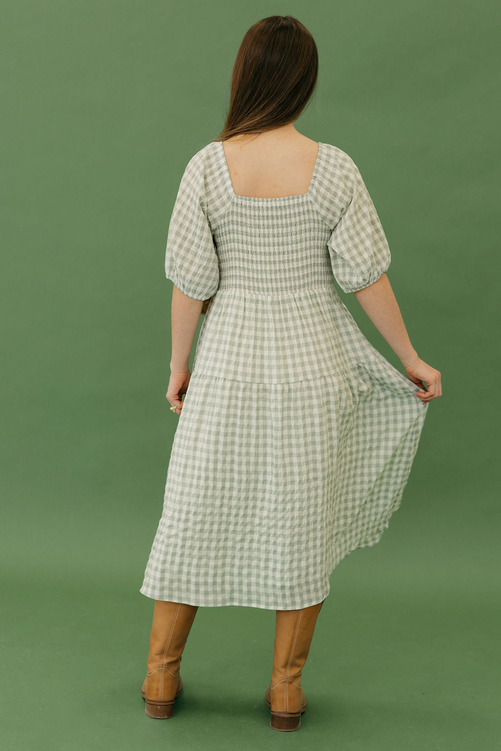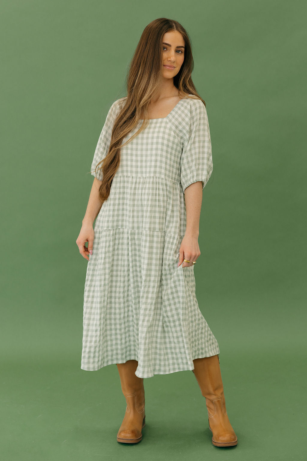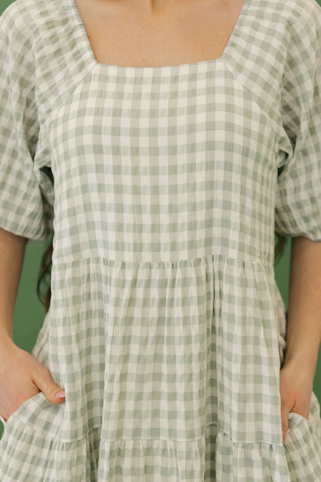 Jensyn Dress-Sage Gingham, boutique clothing, casual, the perfect dress!