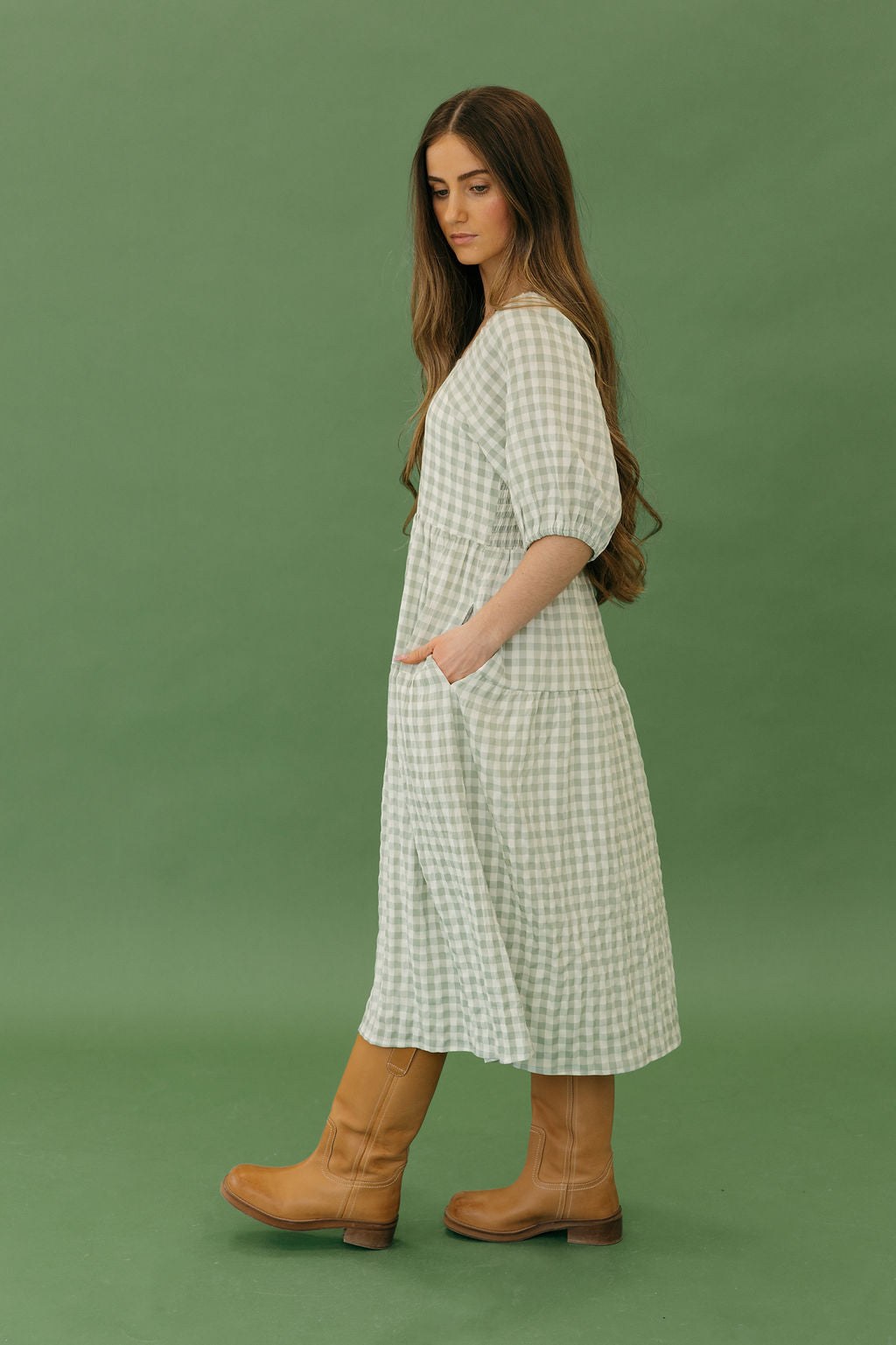 Jensyn Dress-Sage Gingham